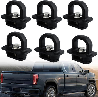 【Special Car Design】Designed according to the original vehicle hole position, provide additional cargo tie down points for securing your place-taking precious cargo in the back of your Truck. 4 PCS Set( 4 Holes in Bed-2 Each Side), 6 SPCS Set( 6 Holes in Bed-3 Each Side).